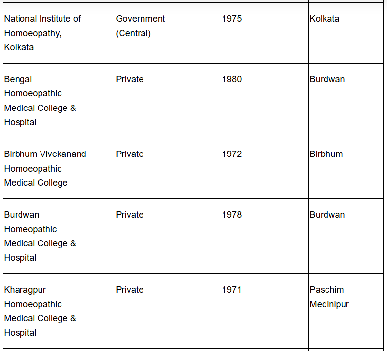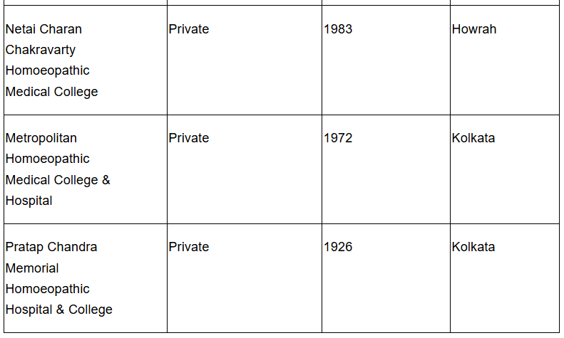 1.How many homeopathy colleges are there in West Bengal?