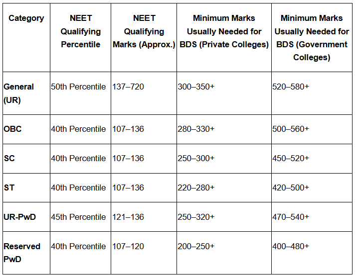 Minimum Marks for BDS in NEET