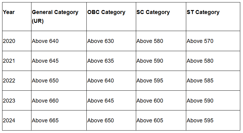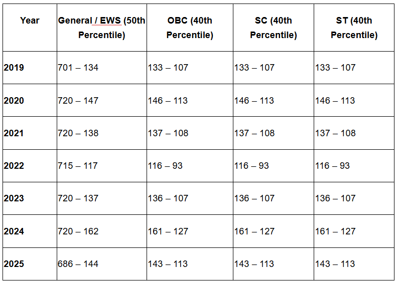 General/ EWS applicants - 50th percentile (approximately 144 marks out of 720)