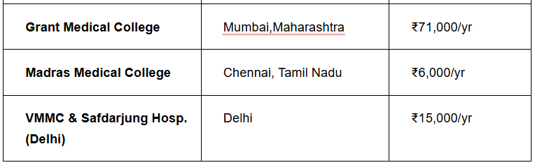 Fees for MBBS in government college