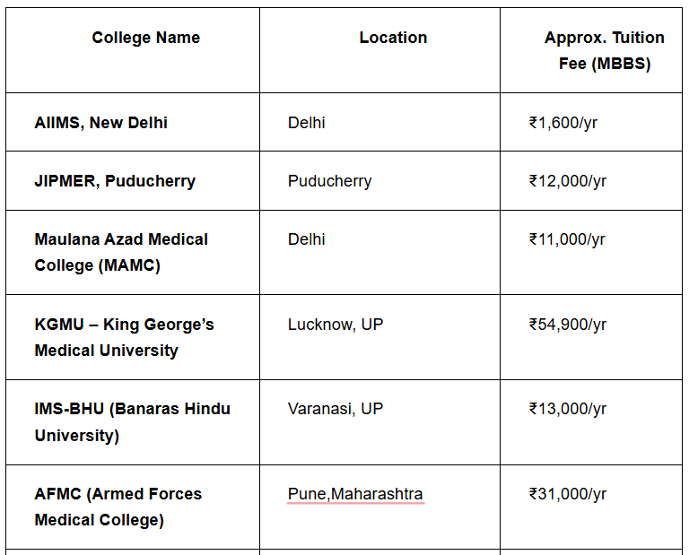 MBBS government college in India