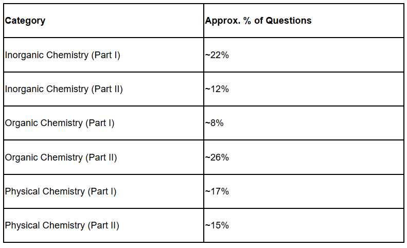 To score well in the inorganic chemistry chapters, the first requirement is to know the inorganic chemistry weightage in NEET. Inorganic chemistry normally carries approximately 30-35% OF questions in NEET chemistry. That is almost 12-15 questions straight from NCERT-based theory. This makes inorganic chemistry chapters for NEET a high-return investment for aspirants aiming to maximize their score with focused effort.