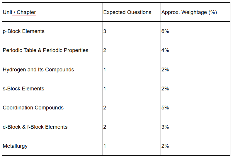 - Based on NEET inorganic chemistry weightage, a systematic and balanced revision plan could be prepared.
