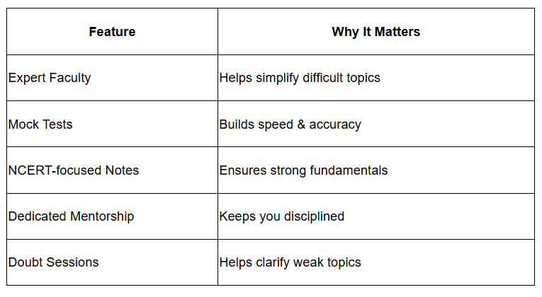 In the table below, there is a brief summary of what makes a coaching institute truly the best coaching for NEET: