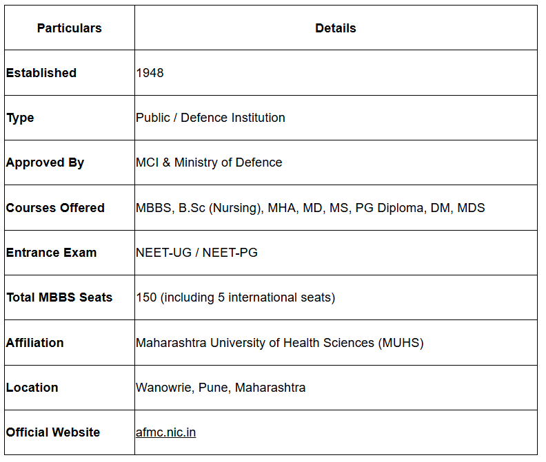 Quick Highlights of AFMC Pune