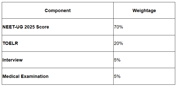 Candidates need to have a minimum of 60% in the three subjects of Physics, Chemistry, and Biology at the 10+2 level, to qualify NEET-UG and to pass the TOELR, interview and medical tests.