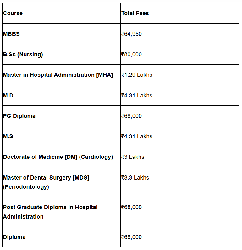 The total MBBS fee for the whole course is approximately ₹64,950, which is very low cost.