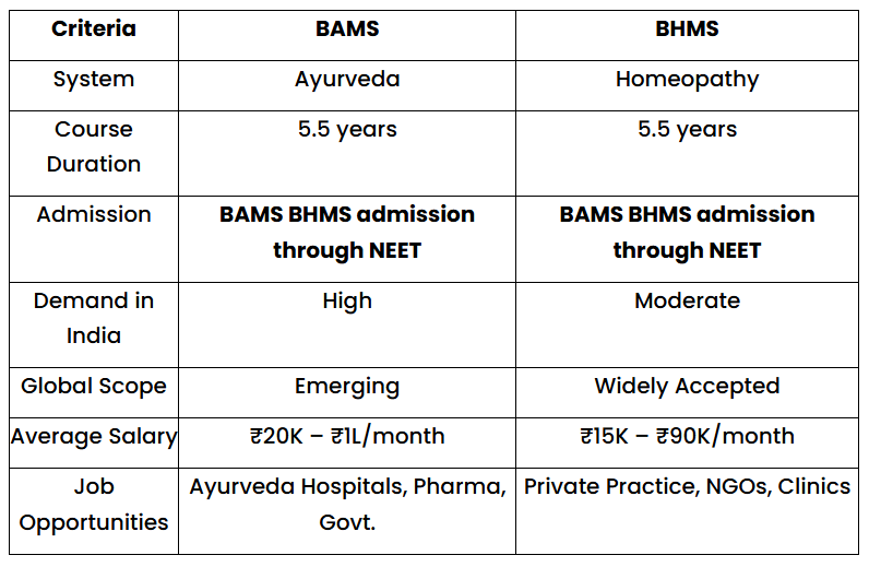 Between BAMS or BHMS salary, BAMS generally offers a slightly better edge due to increasing popularity of Ayurvedic products and government-backed wellness programs.